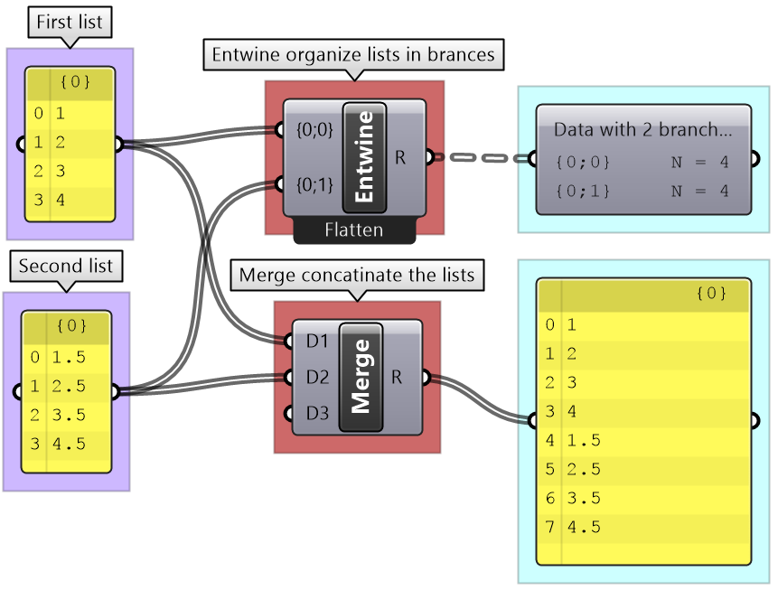 | Recombine the middle part with the rest of the tree and create polylines through each branch elements. | |