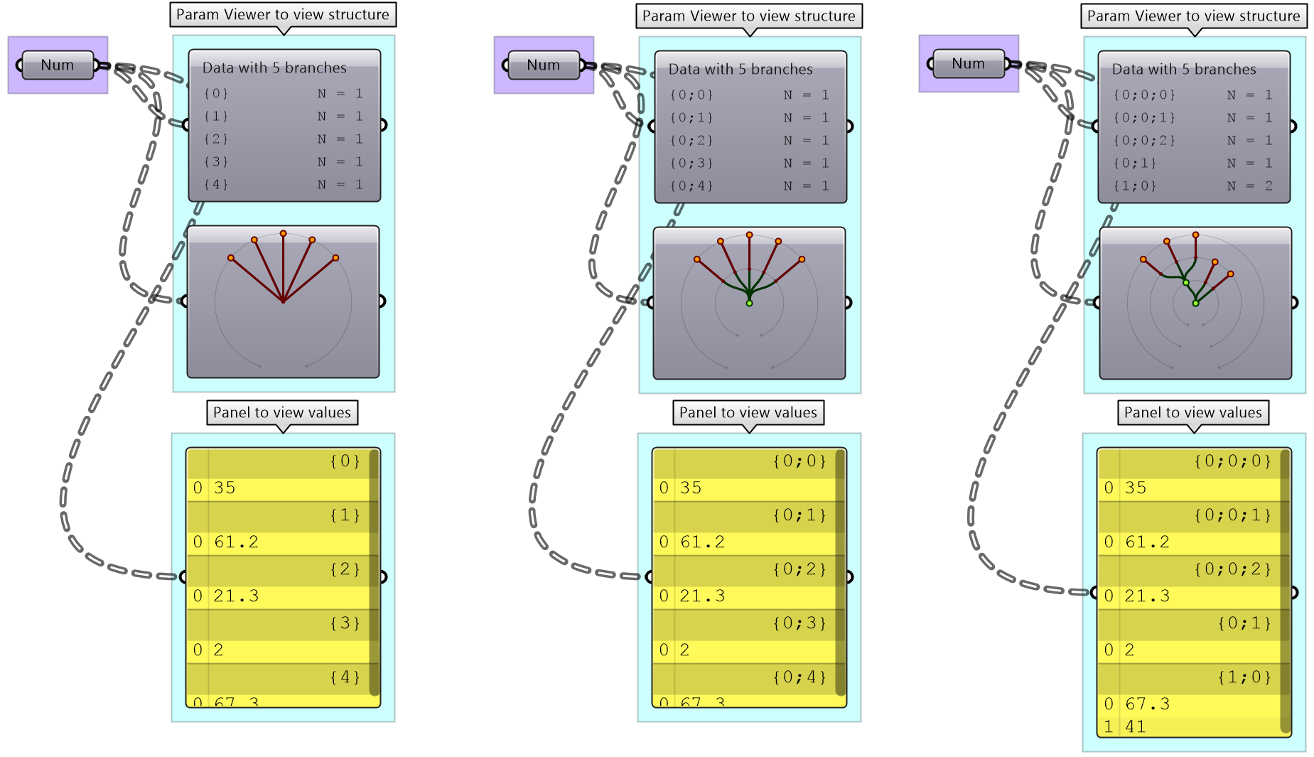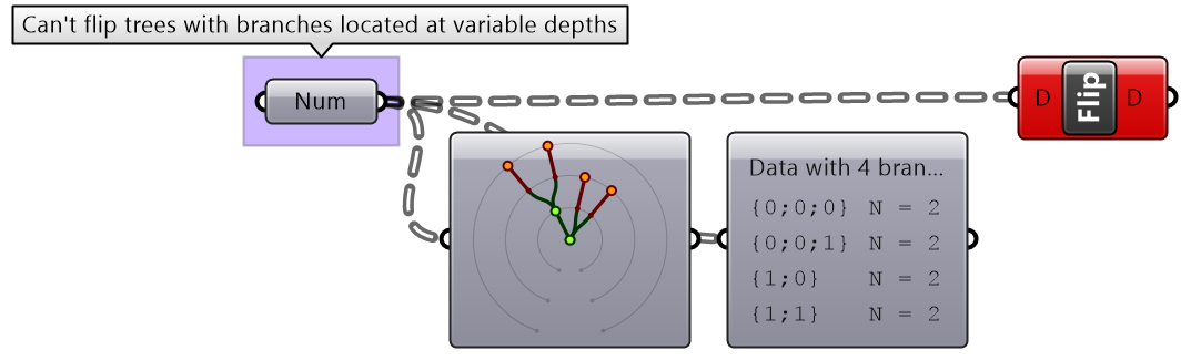 Suppose you have a grid with 7 branches and 11 elements in each branch, and you’d like to shift elements between indices 1-3 and 7-9. You can use the split tree to help isolate the points you need to move using the mask: {*}[ (1,2,3) or (7,8,9) ], move the positive tree, then recombine back with the negative tree.