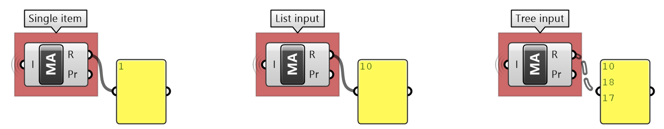 | 1- Internally set data: Data can be set inside any instance of a parameter. Once set, it remains constant, unless manually changed or overridden by external input. This is a good way when you do not generally need to change the data after it is set (constant). Data is stored inside the GH file. | |