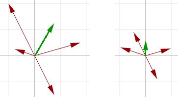 Figure 9: Adding various length vectors (left). Adding same length vectors (right) to get the average direction.