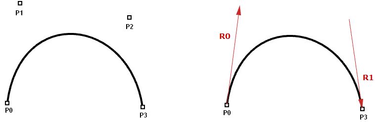● The end point of the first curve (P1)