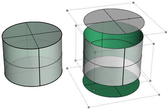 The top and bottom faces of the cylinder in the following example are trimmed from planar surfaces.